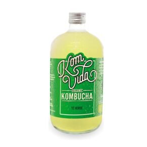 Café arábica (60%)*, yerba mate*, panela* y café verde*. Todo ello fermentado con nuestros cultivos de kombucha*. Envase de vidrio. 100% ecológico.
