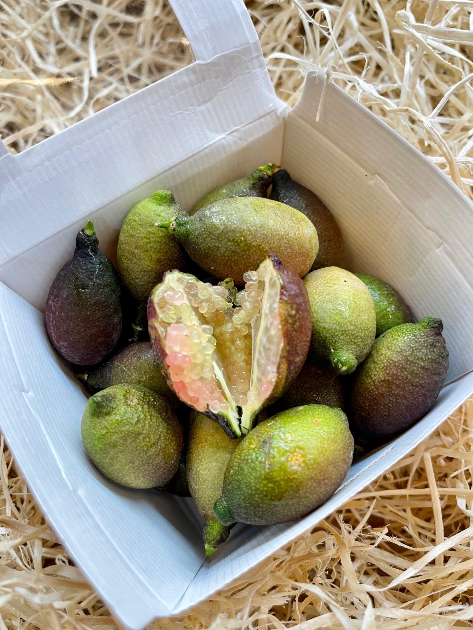 Recibirás una caja con lima caviar fresca en formato de 200 g, 500 g o 1 kg,